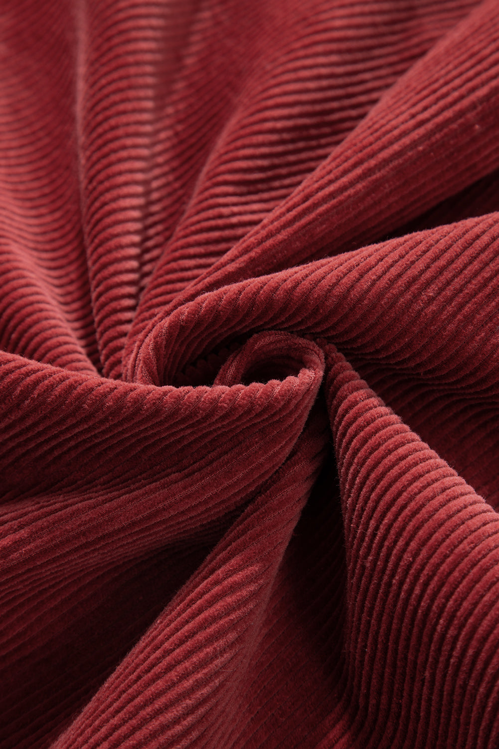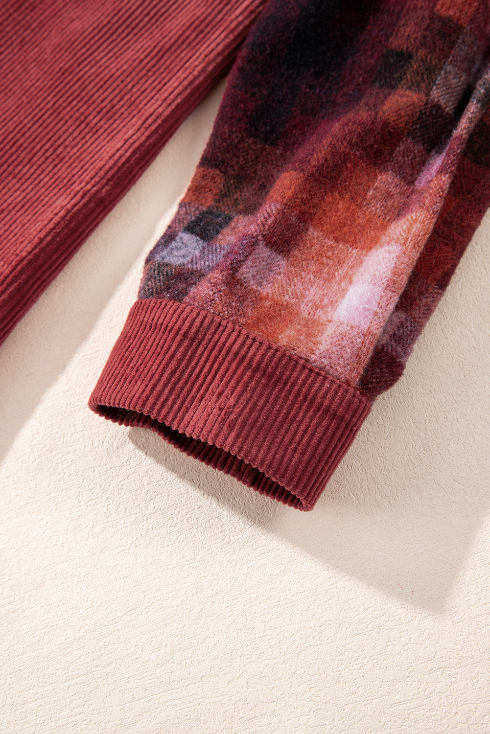 Desert heat meets street chic in this oversized corduroy shacket, featuring bold checker patchwork sleeves and raw edge detailing. The flame-red hue adds a fierce pop to any outfit, while the relaxed fit makes it perfect for layering over crop tops, tanks, or even a bodycon dress. Lightweight but full of attitude, this piece is a must-have for transitional weather and statement styling.
