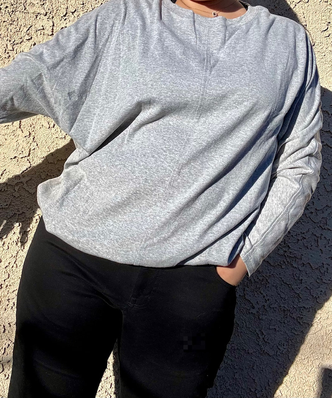 Gray Solid Color Patchwork Long Sleeve Top