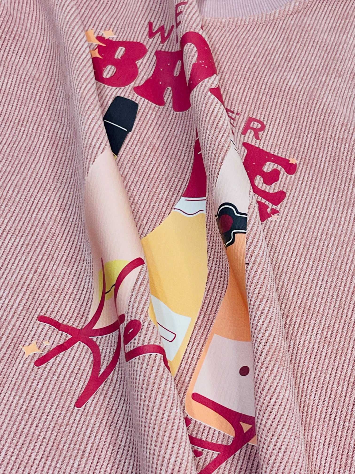 Pink "Wine Never Broke my Heart" Corded Baggy Sweatshirt