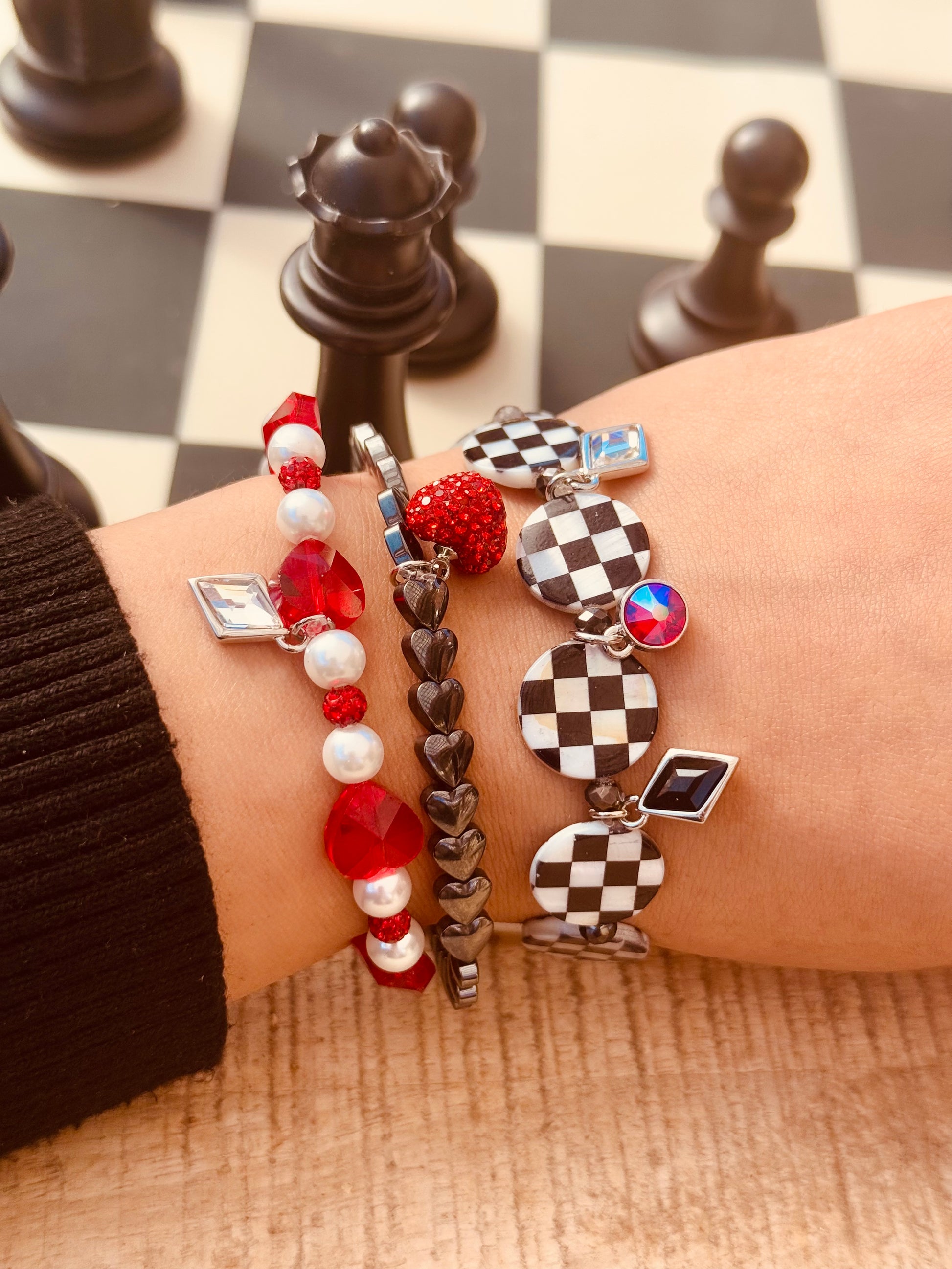 Suited for a Queen Bracelet with Checkered Shell and Hematite beads